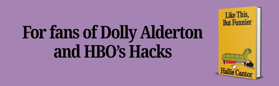If you’re in the NYC area, I’m hosting author and TV writer Hallie Cantor’s book launch event at Greenlight Books in Brooklyn this Thursday, 4/9 at 7:30pm. RSVP for the event here—I read an advance copy of the novel and loved it so much I interviewed Hallie about it for the comedic fiction chapter in Inside Jokes. Come join us!